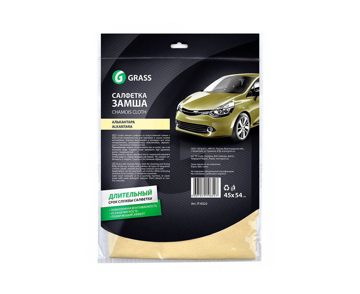 Салфетка из искусственной замши с ворсистой поверхностью для протирки и сушки кузова автомобиля. Хорошо впитывает влагу. Размер 45*54см, цвет желтый. Пр-во Корея.